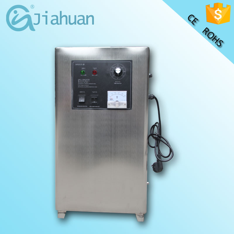 臭氧配置列表 一、HY-005-10G臭氧發(fā)生器: (一)、產(chǎn)品組成: 10G電源模塊 (1個) 10G石英管 (1個) 電流表 (1個) 電源指示燈 (1個) 臭氧指示燈 (1個) 風(fēng)扇 (2個) 臭氧輸出口 (1個) 氧氣輸入口 (1個) 120分鐘定時開關(guān) (1個) 電源保險 (1個) 氣 泵 (1個) (二)、產(chǎn)品特點(diǎn): 1、風(fēng)冷,單冷設(shè)計(jì) 2、空氣、水處理兩用 3、外殼為不銹鋼 4.機(jī)器自帶定時器(120分鐘) (三)、設(shè)備參數(shù) 機(jī)箱尺寸:32*26*58cm 包裝尺寸:38.5*32.5*71CM 臭氧產(chǎn)量:10g/h 輸入電壓:220V 50Hz 功率:180 W 規(guī)格:箱式 機(jī)器重量:10.9KG 毛重:12.3KG 臭氧濃度:10-15mg/L 空間處理:200立方