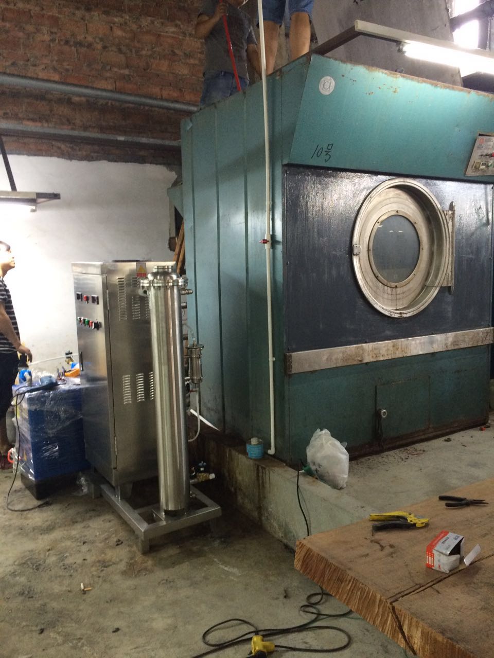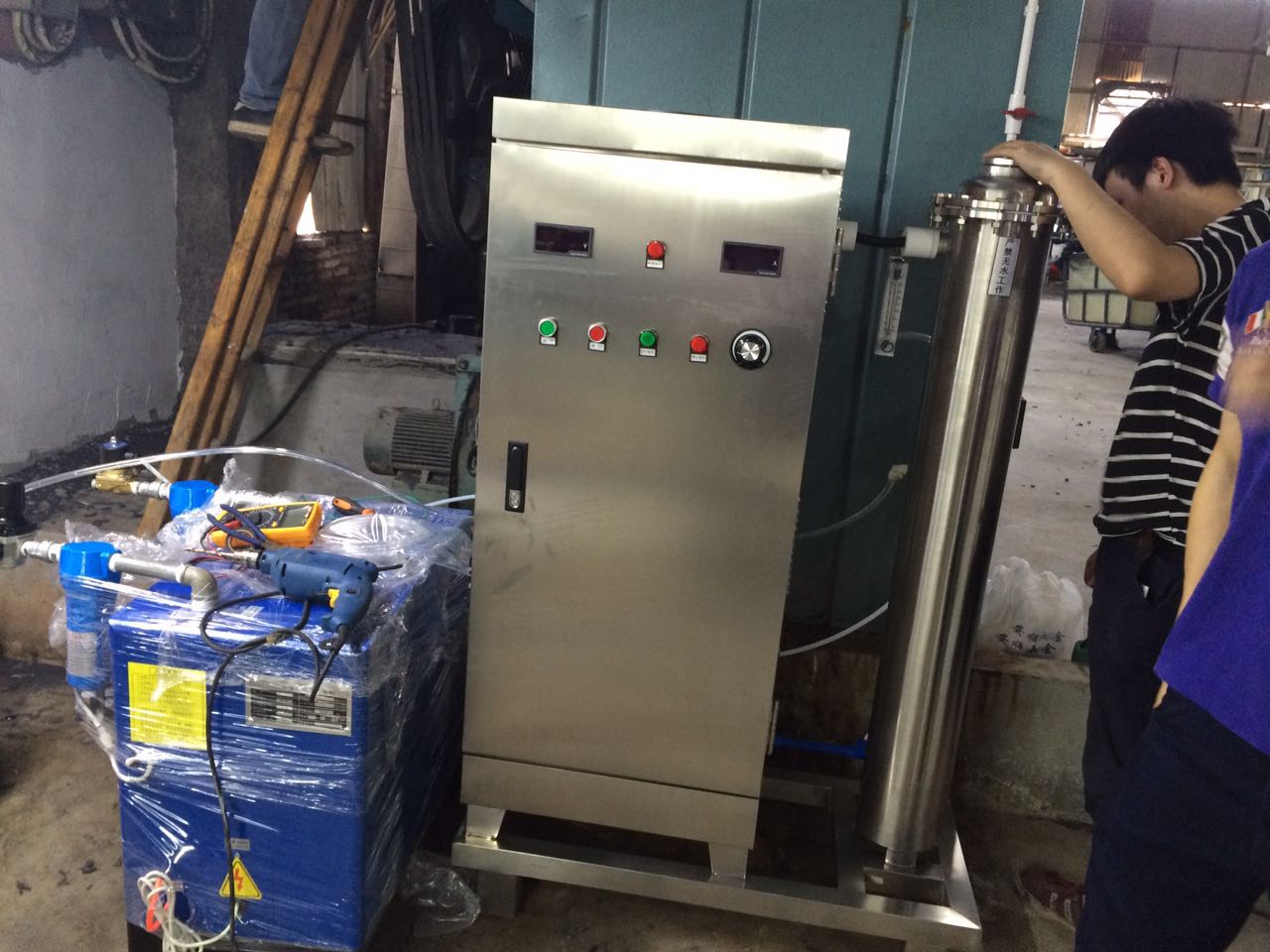 牛仔洗水臭氧,臭氧發(fā)生器,牛仔洗水專用臭氧機(jī),蜂窩室臭氧發(fā)生器 牛仔洗水安裝現(xiàn)場(chǎng)圖: